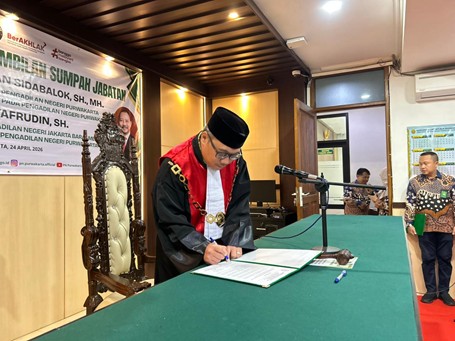 Pada Hari Jum’at tanggal 24 April 2026, Pengadilan Negeri Purwakarta melaksanakan acara pelantikan dan pengambilan sumpah jabatan bertempat di ruang sidang Cakra pada Pengadilan Negeri Purwakarta. Acara berlangsung dengan khidmat dan dihadiri oleh jajaran pimpinan, para hakim, pejabat struktural dan fungsional, serta tamu undangan.