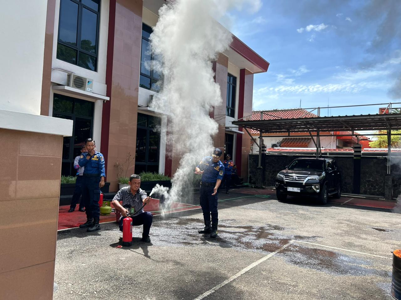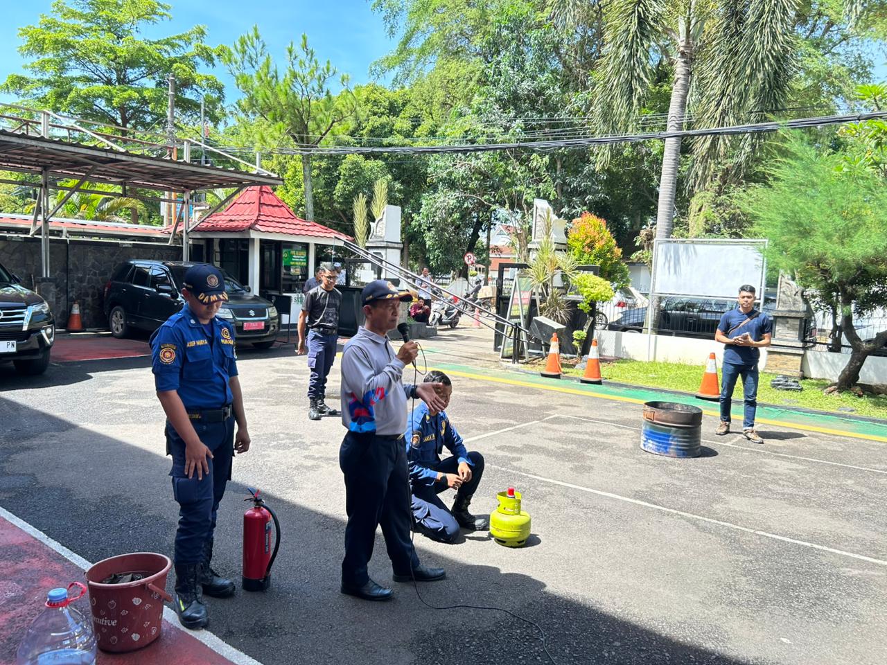 Bertempat di halaman Kantor Pengadilan Negeri Purwakarta, Bapak Juddy Herdiana S kepala Dinas Pemadam Kebakaran dan Penyelamatan Kabupaten Purwakarta menjelaskan langkah-langkah penyelamatan diri dan penanggulangan saat terjadi kebakaran.